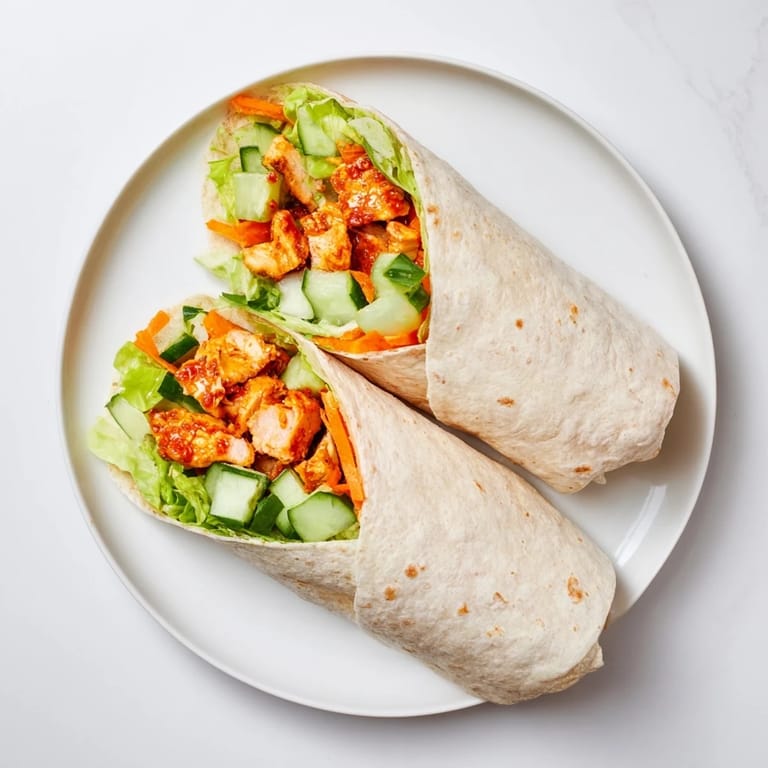 These wraps work beautifully alongside simple sides. A light citrus salad or some sweet potato fries balances the heat nicely. On hot days I serve them with ice cold cucumber water, and in colder weather they pair surprisingly well with a cup of miso soup.