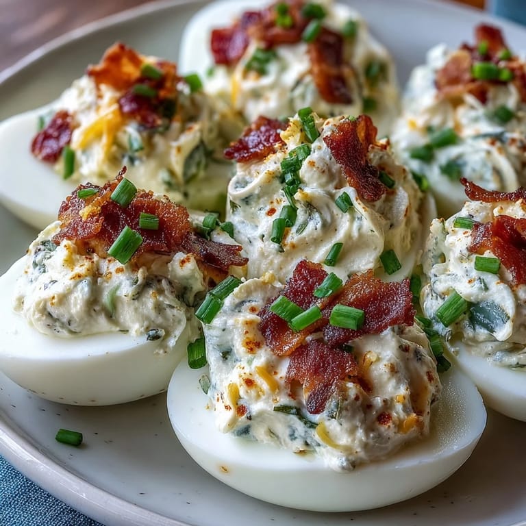 Save The first spark of inspiration for these Jalapeño Popper Deviled Eggs came when I was prepping a tray of classic deviled eggs for a game day gathering, and the cheerful spice rack caught my eye. The idea of blending creamy cream cheese with the punchy freshness of jalapeños sounded almost mischievous. I could already imagine the moment of biting into a smoky, bacon-studded egg—balanced between rich and tangy. Sometimes, a little experiment in the kitchen turns into your new signature dish. This one truly surprised me with its bold flavor and addictive creaminess.